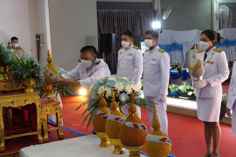 ร่วมพิธีถวายเครื่องราชสักการะ วางพานพุ่ม และพิธีจุดเทียนถวายพระพรชัยมงคล
