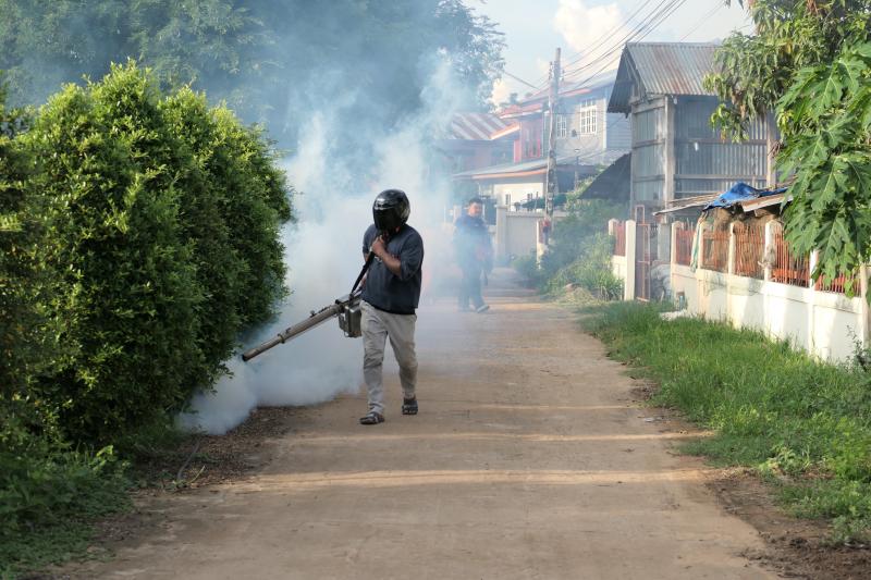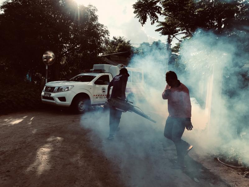 ลงพื้นที่ฉีดพ่นหมอกควันกำจัดยุงลาย