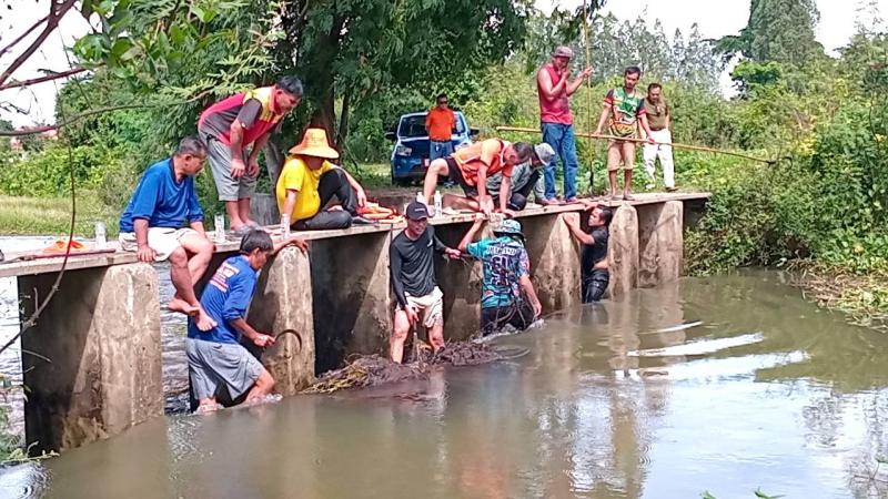กำจัดวัชพืชที่ขวางทางน้ำ บริเวณห้วยหนองเอี่ยน หมู่ 8