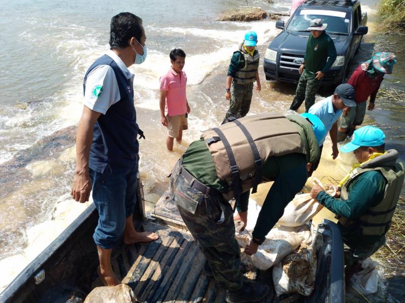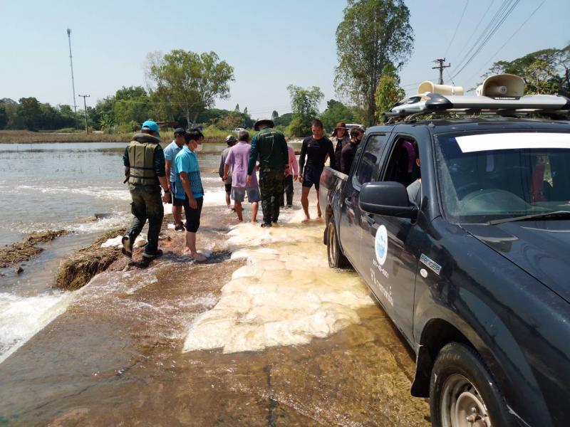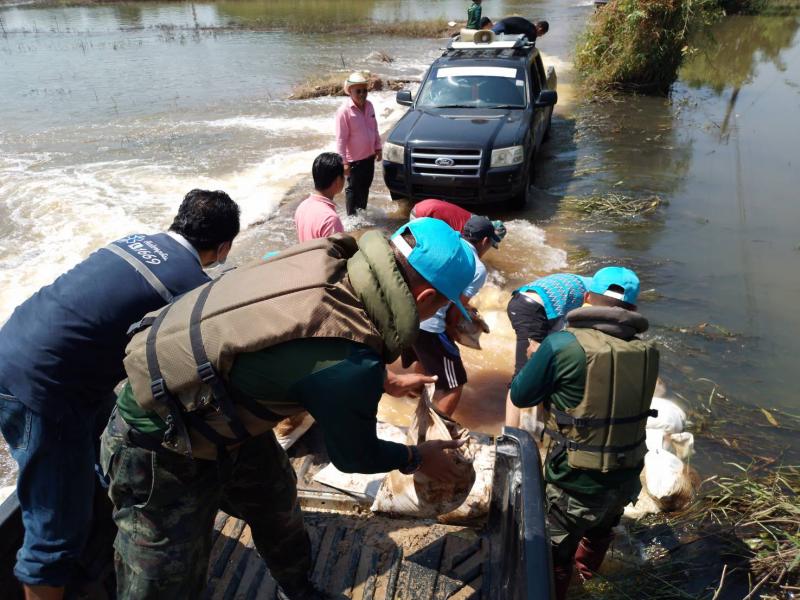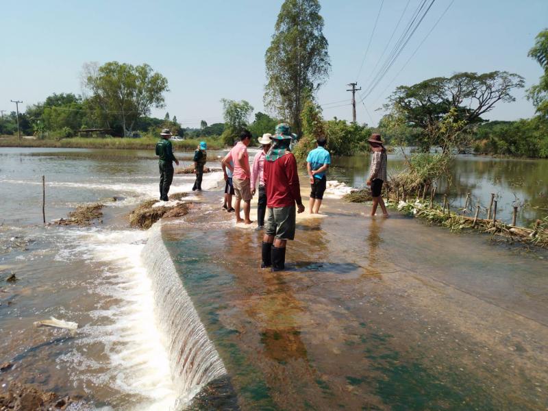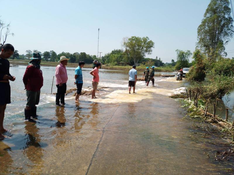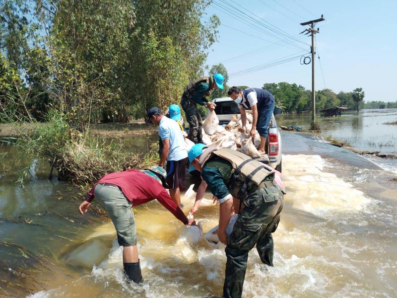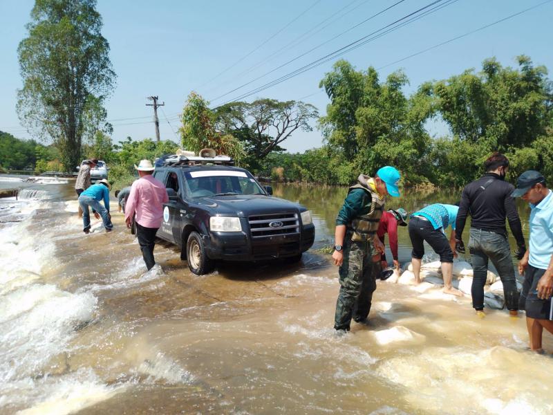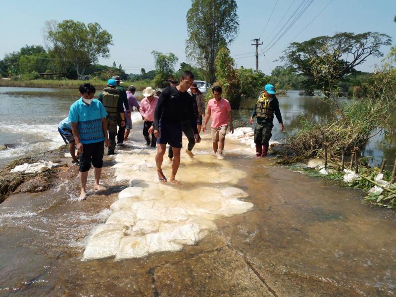 ลงพื้นที่นำกระสอบทรายเสริมถนนที่ถูกน้ำกัดเซาะ