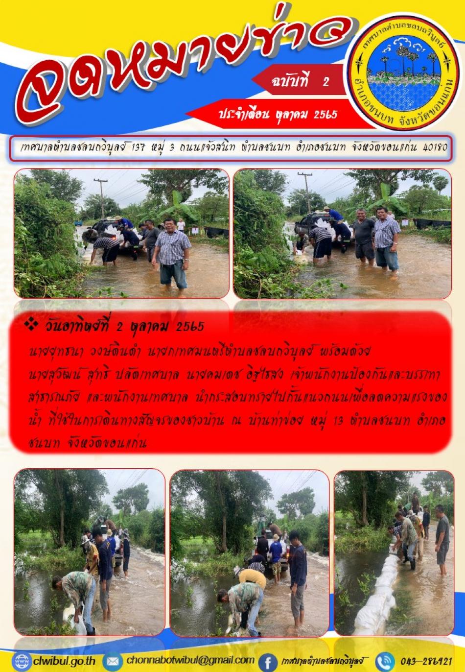 นำกระสอบทรายไปกั้นแนวถนนเพื่อลดความแรงของน้ำ [2 ตุลาคม 2565]