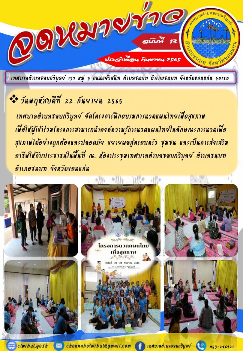 โครงการฝึกอบรมการนวดแผนไทยเพื่อสุขภาพ [22 กันยายน 2565]