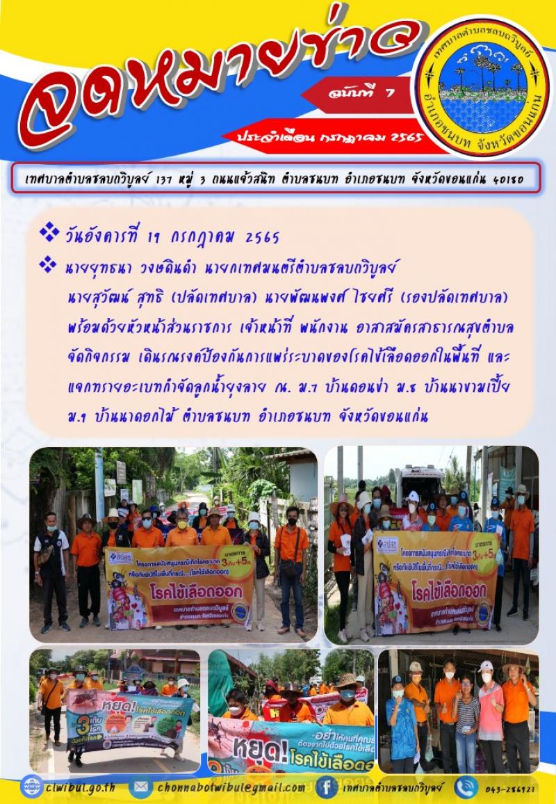 เดินรณรงค์ป้องกันการแพร่ระบาดของโรคไข้เลือดออกในพื้นที่ [19 กรกฎาคม 2565]